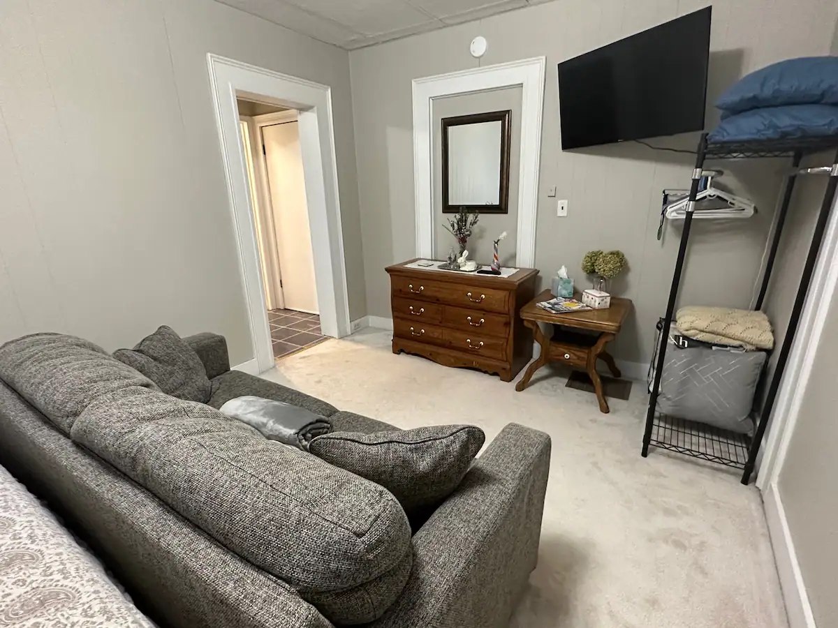 The Riverview is a warm and comfortable, pleasantly decorated, one bedroom suite with separate laundry room.The kitchen is fully equipped and very accommodating.A large smart tv & internet in the living room/bedroom and a full bathroom. You will enjoy a new, comfortable king size bed. The Genesee river is just outside the back yard.