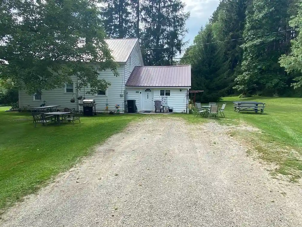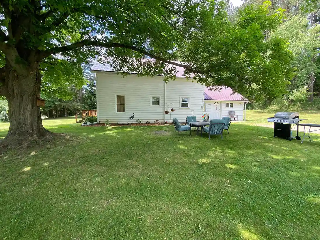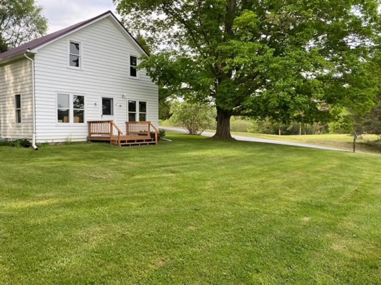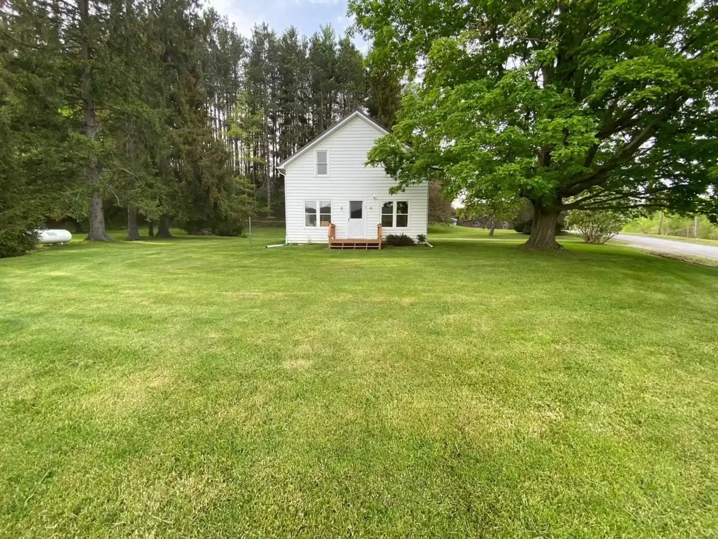 A half bath and washer & dryer. There is over 2 acres of level lawn space for outdoor activities. There is ample/easy parking for all vehicles and boat trailers. Outdoor patio seating, gas grill with side burner and fire pits. Come stay with us and enjoy a relaxing time, local fishing, boating or the public beach at Rushford Lake. The Rushford Lakeside Family Getaway is perfect to get out of the city and hustle of life and enjoy a country setting. Listen to the birds, the owls at night, see wildlife, fireflies and just plain relax. To access the lake this year you will enjoy the public beach, the boat launch, the dam picnic area and fishing access, as they are very close. Next year we will have a new pontoon boat & dock space right across the road. The yard is huge and flat to enjoy games, volleyball, bonfires & more.