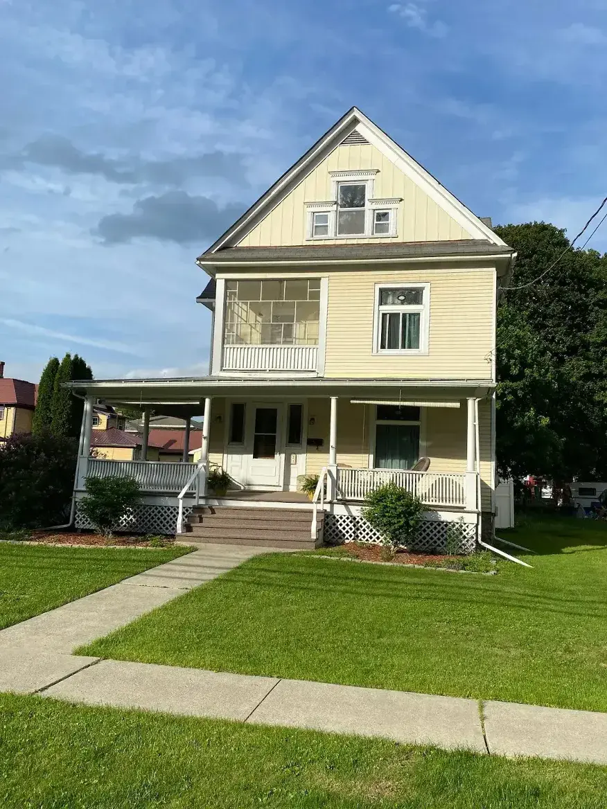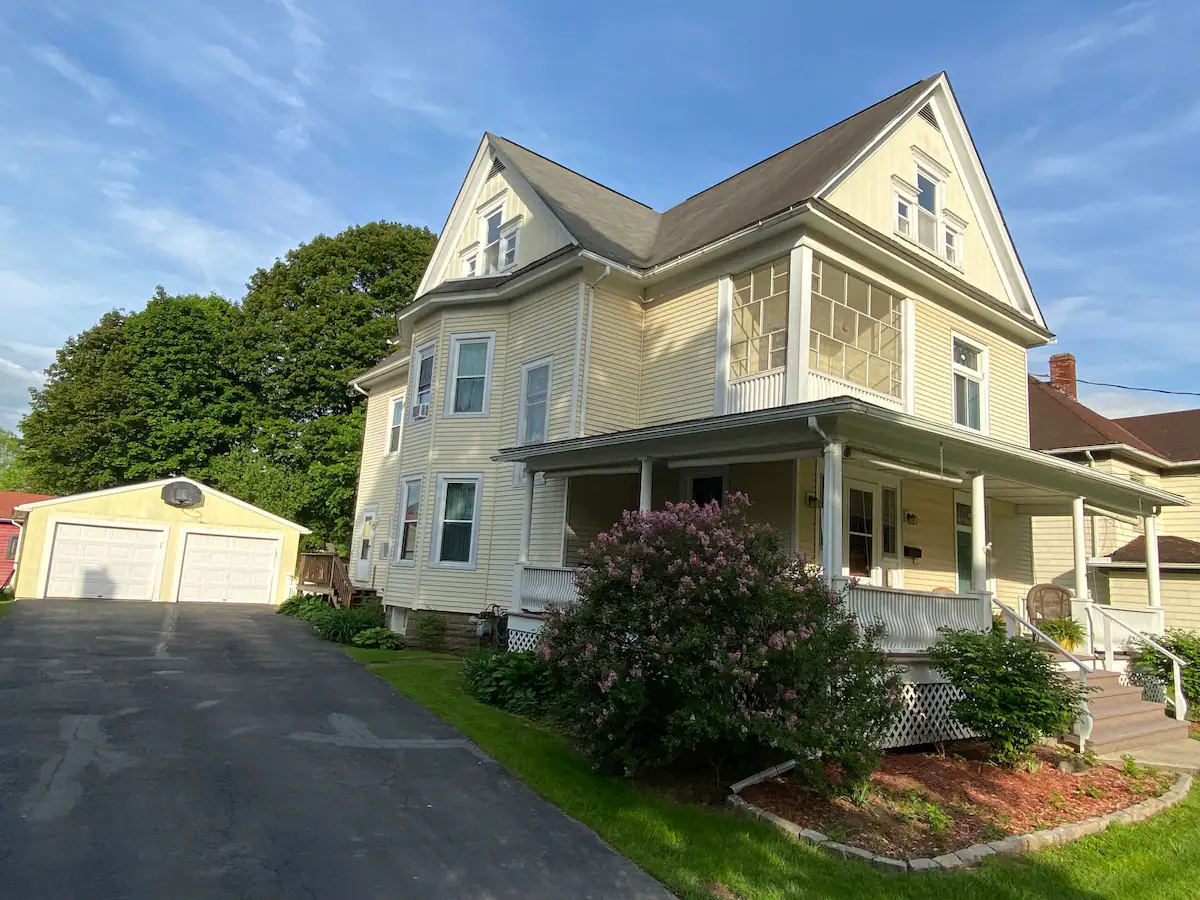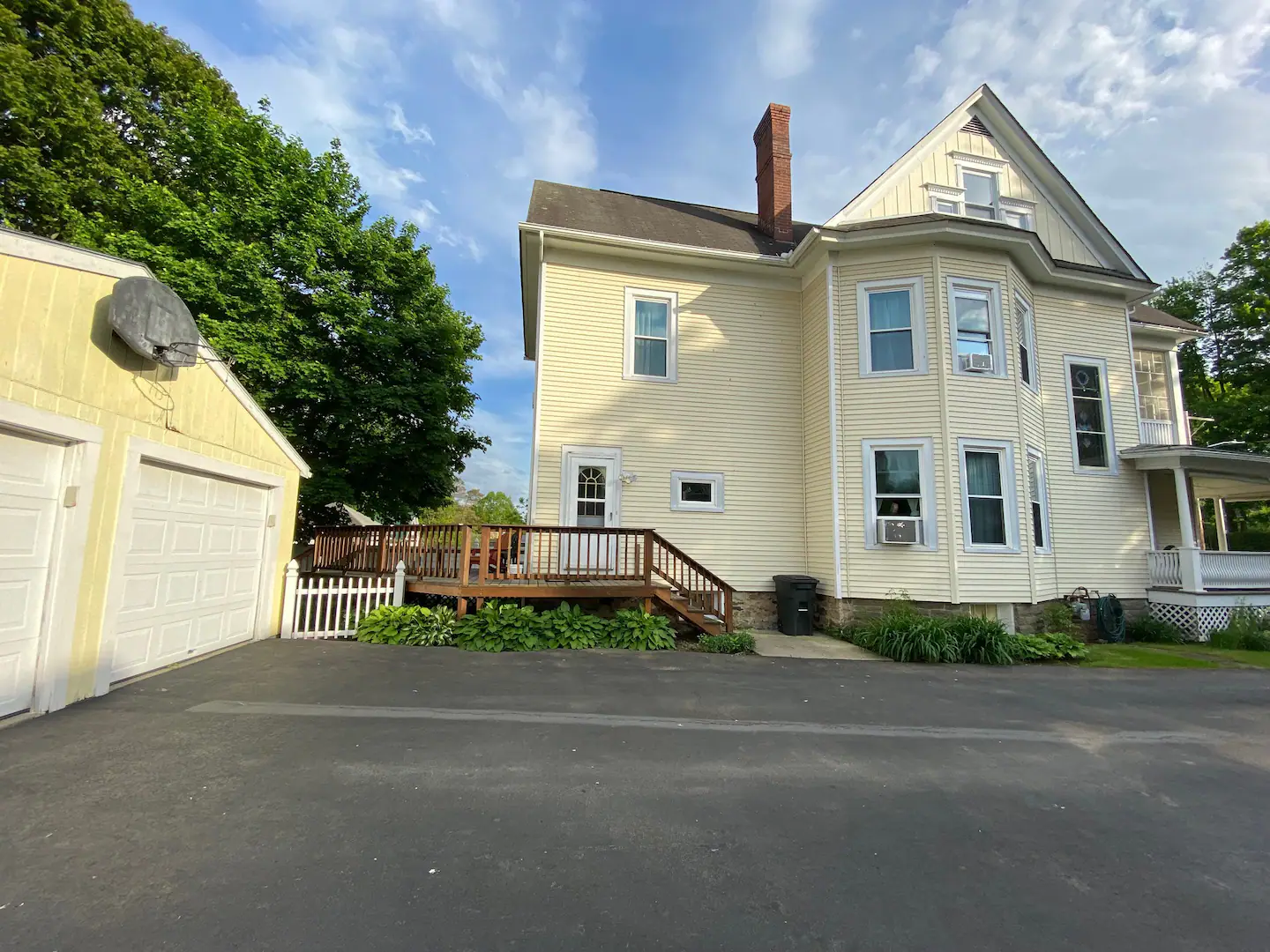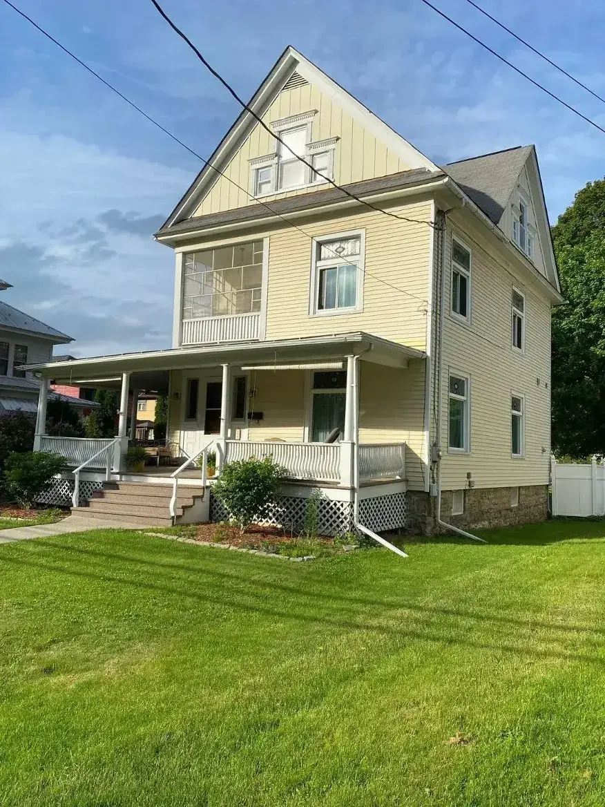 This beautiful & spacious Victorian located in the Village of Wellsville is directly across from the Historic Pink House. Its half a block from the Wellsville High School and 2 blocks from Quackenbush Fields & Island Park. There's a large front Victorian porch, a spacious back deck, fenced in yard, and a gas grill. You will enjoy charming, spacious, clean rooms. The full kitchen is very accommodating, large dining room & living room.Two full bathrooms and four bedrooms with king & queen beds.