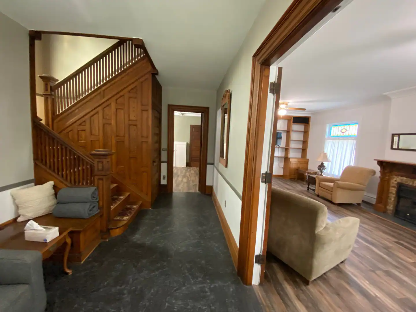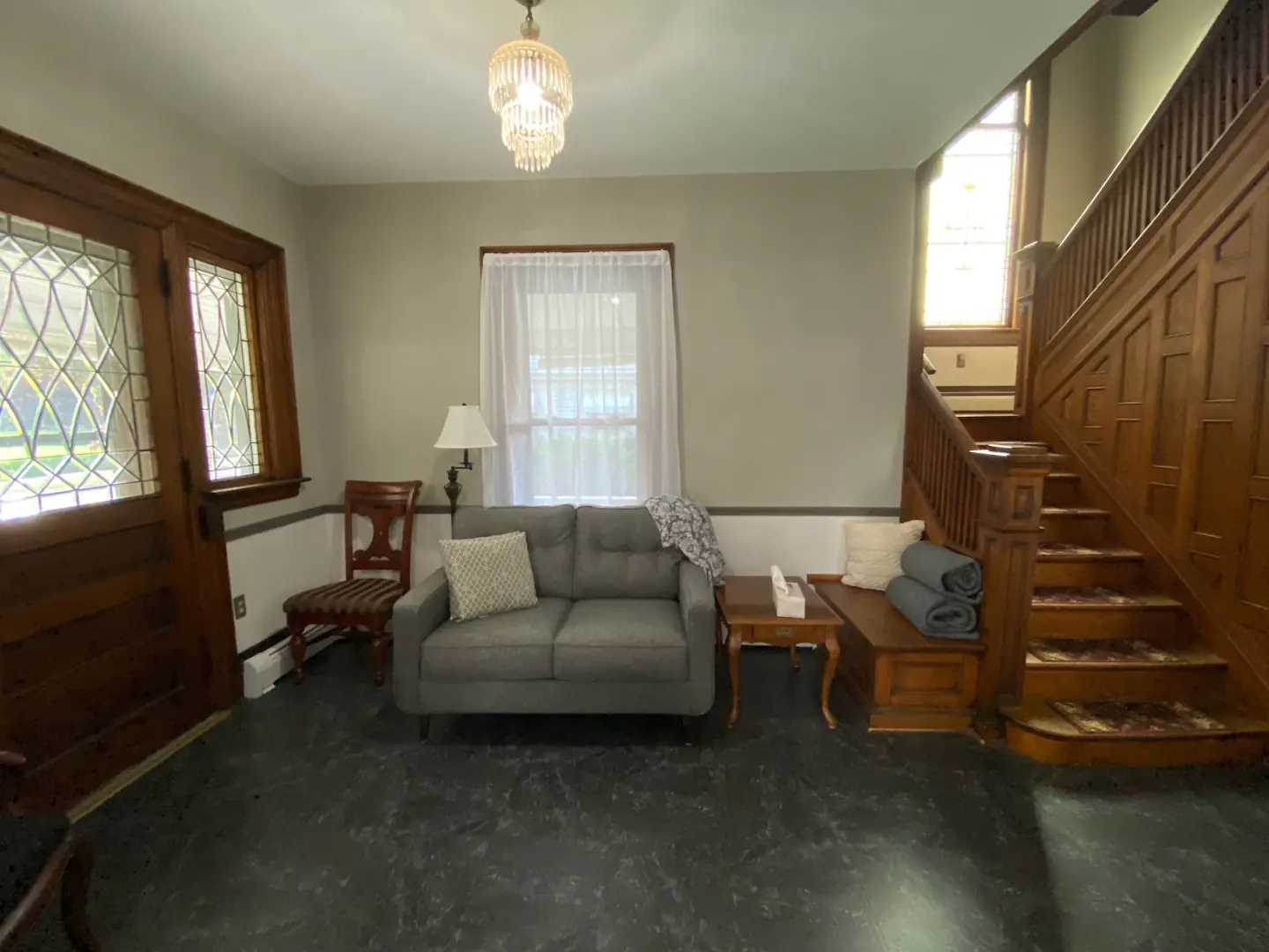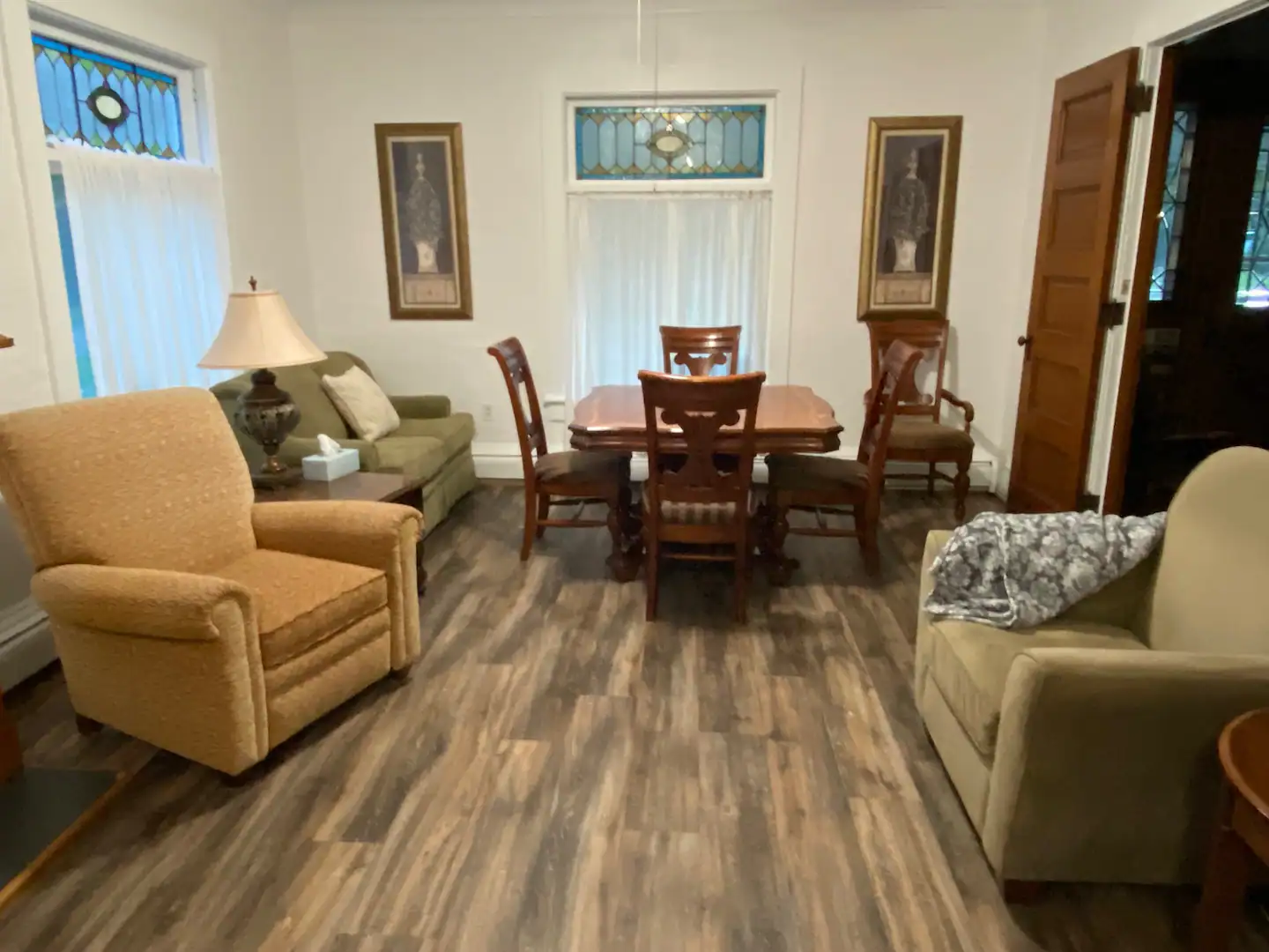 October-11 2023Our family booked this home so we could attend Houghton College family weekend. Jeff made the whole process of checking in very easy. The house was large enough to accommodate our family of seven. We loved the old style woodwork and stained glass windows. The kitchen was stocked with snacks and essentials. Everyone enjoyed being able to relax at the end of each day. Overall, we had a wonderful stay and would definitely like to stay there again. Thanks, Jeff.