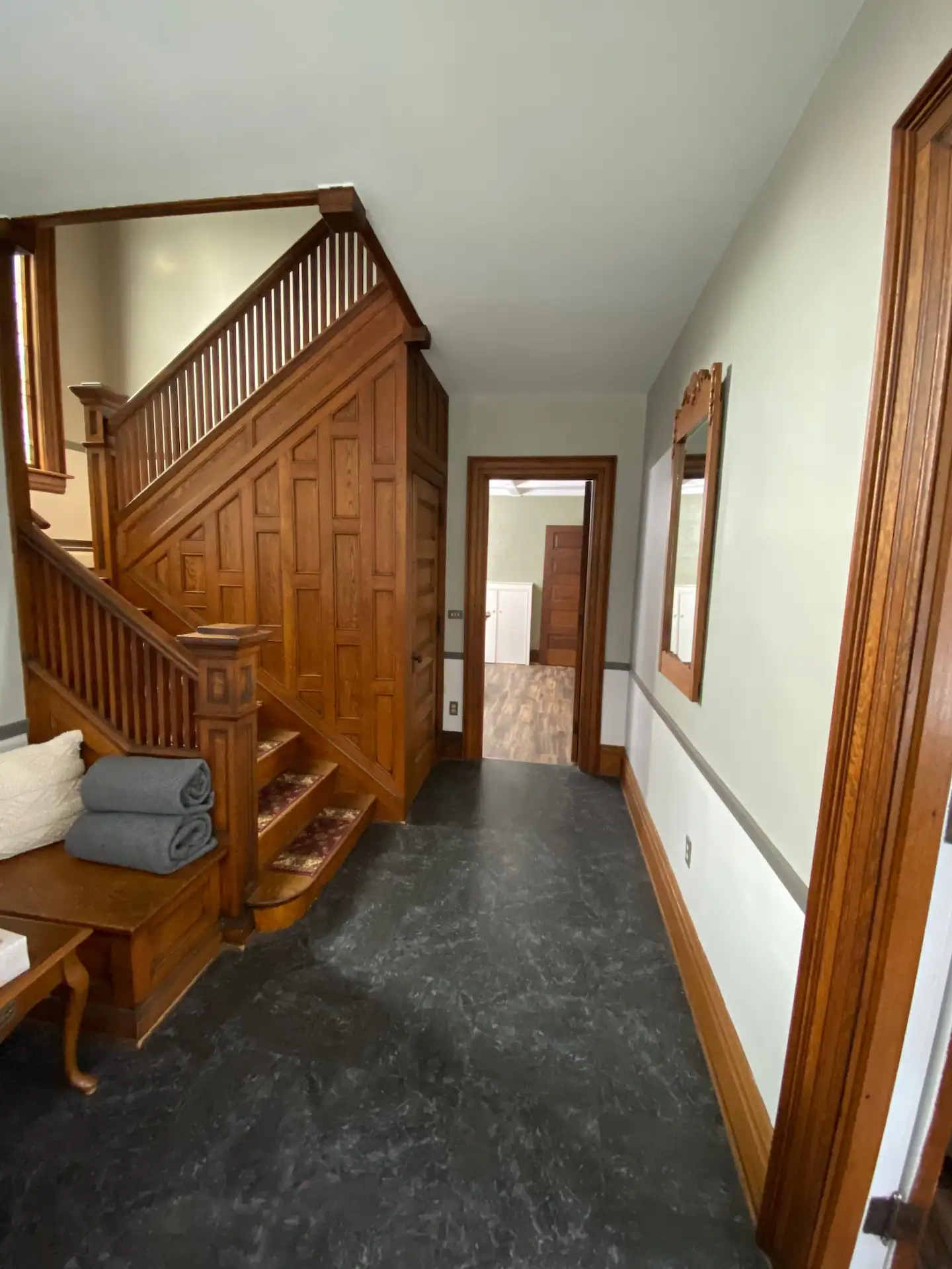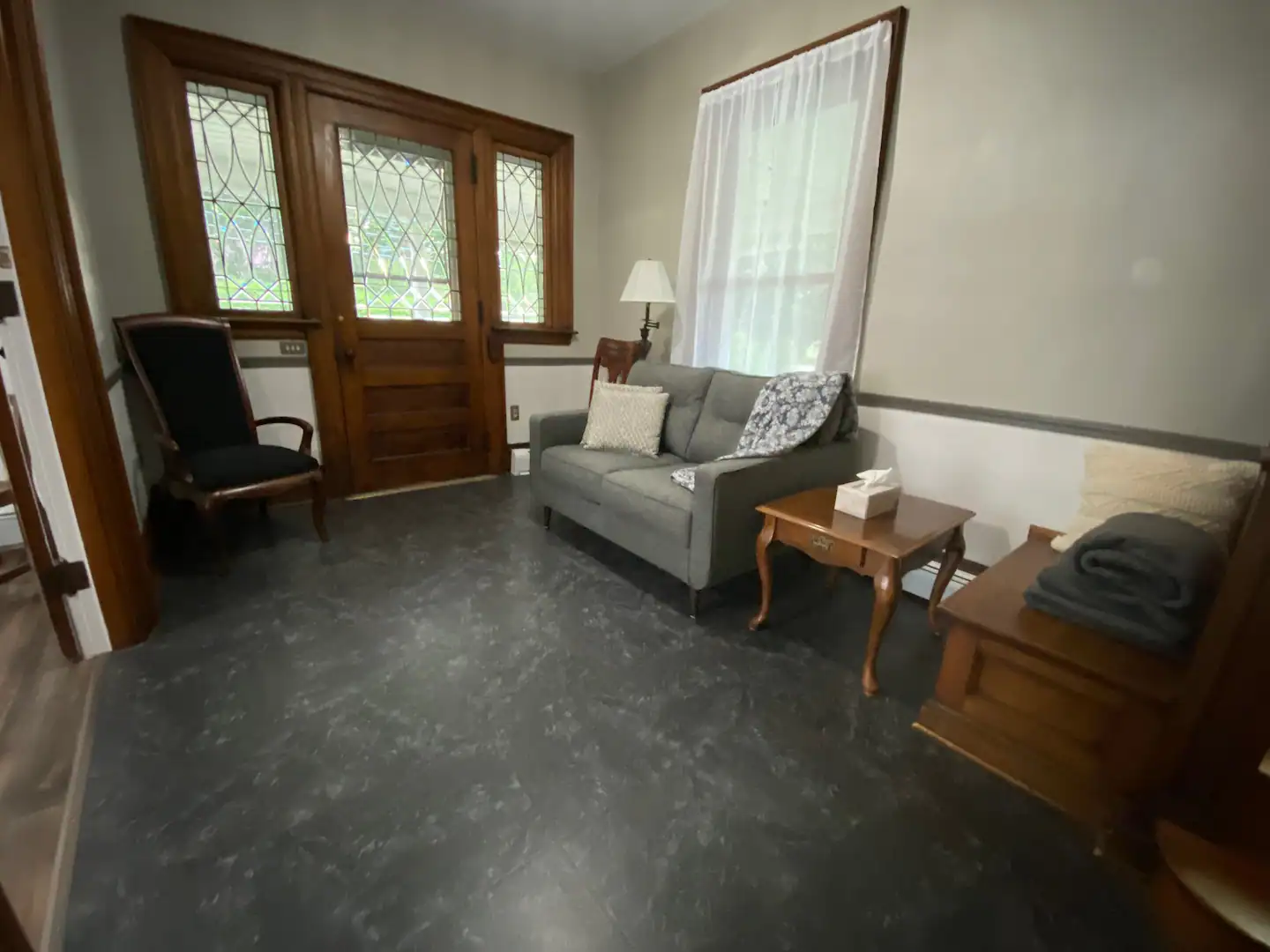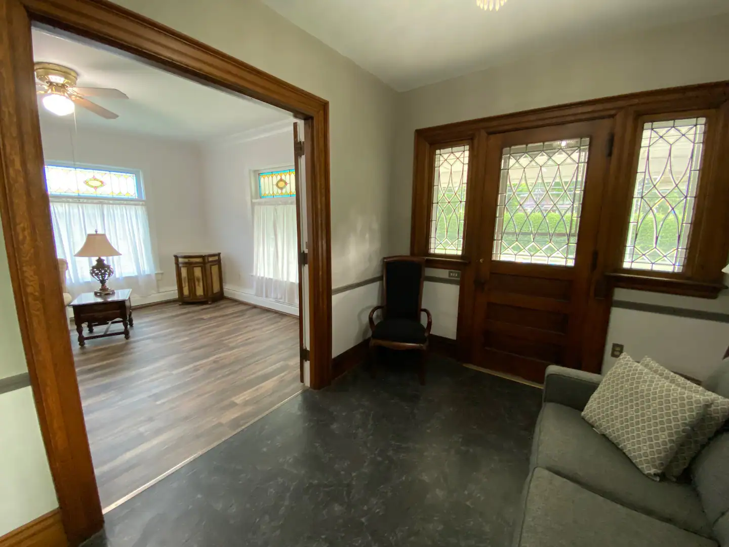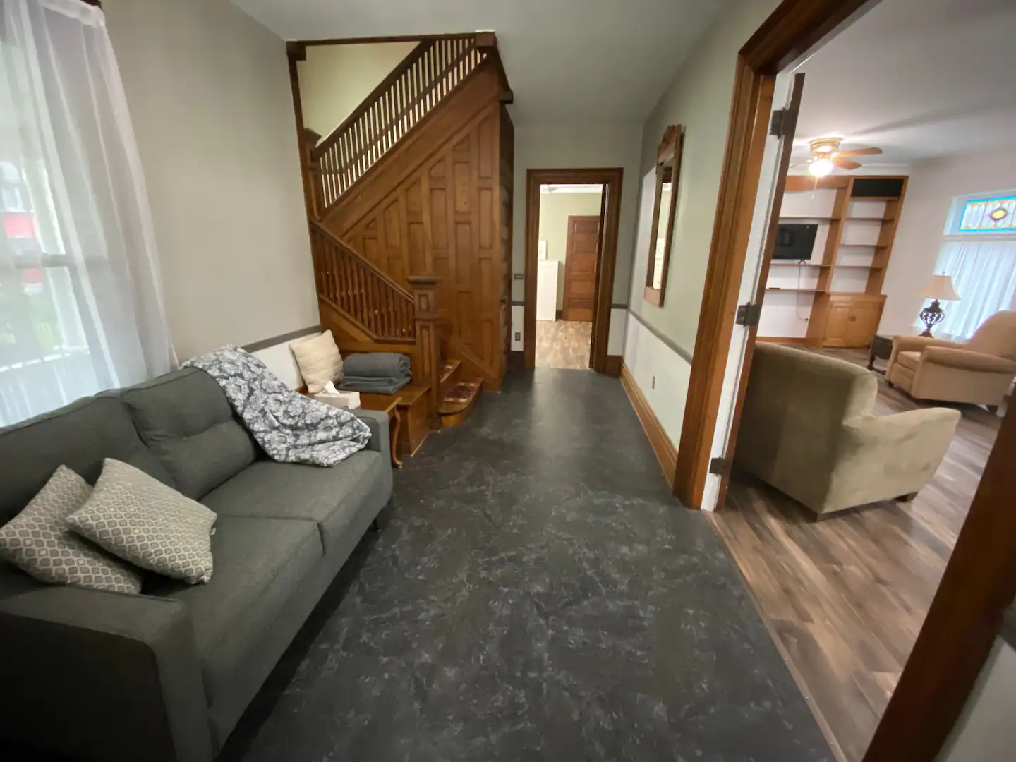 October-11 2023Our family booked this home so we could attend Houghton College family weekend. Jeff made the whole process of checking in very easy. The house was large enough to accommodate our family of seven. We loved the old style woodwork and stained glass windows. The kitchen was stocked with snacks and essentials. Everyone enjoyed being able to relax at the end of each day. Overall, we had a wonderful stay and would definitely like to stay there again. Thanks, Jeff.