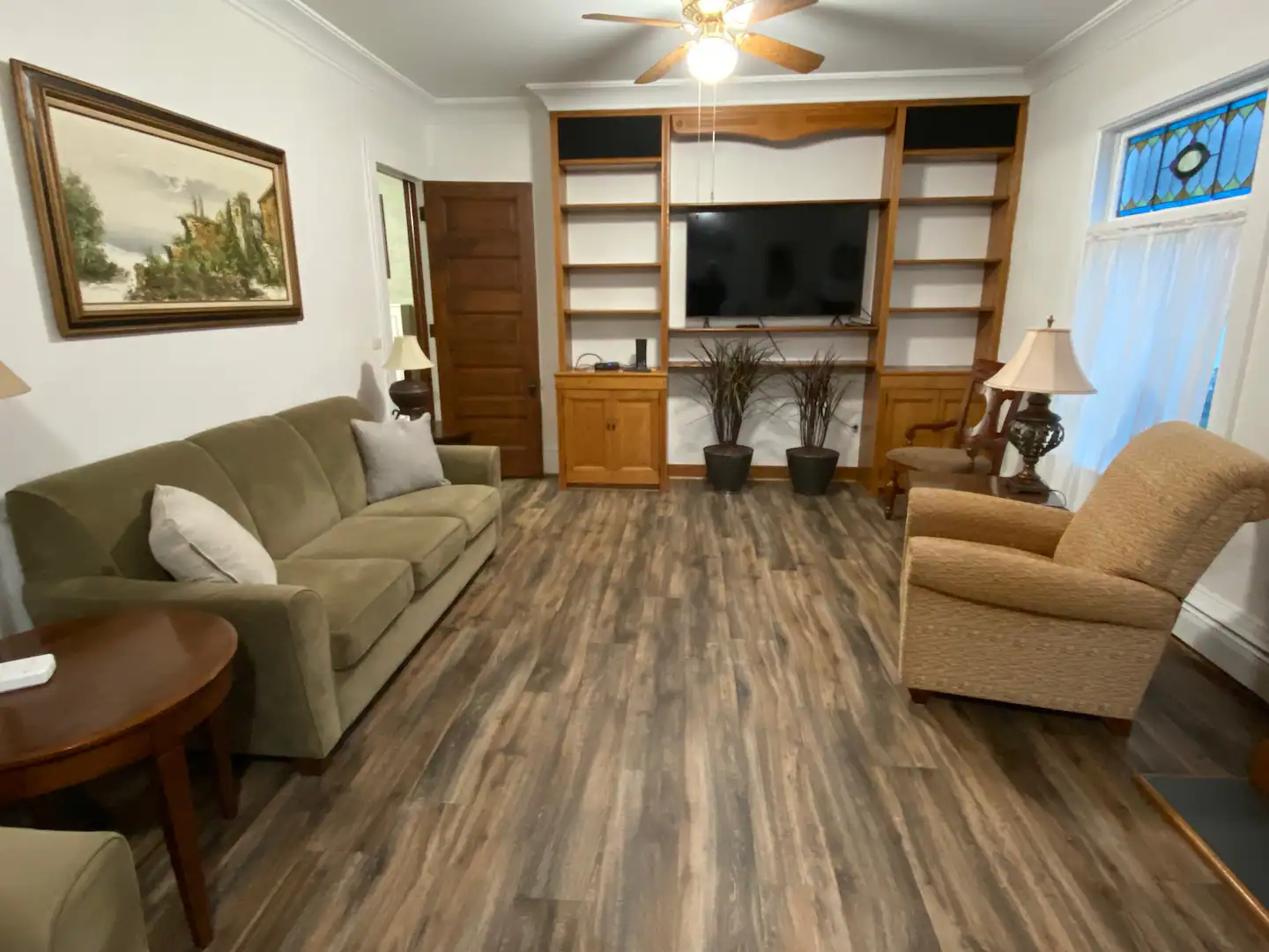 October-08 2022Spacious home with beautiful stained glass windows and woodwork throughout. All the amenities were included like snack bags of chips and coffee pods. Beds were great and the livingroom was big. This house could easily host 8 people comfortably. Nice neighborhood very close to Alfred State and Alfred U. Check in and check out was simple. Jeff is a great host.
